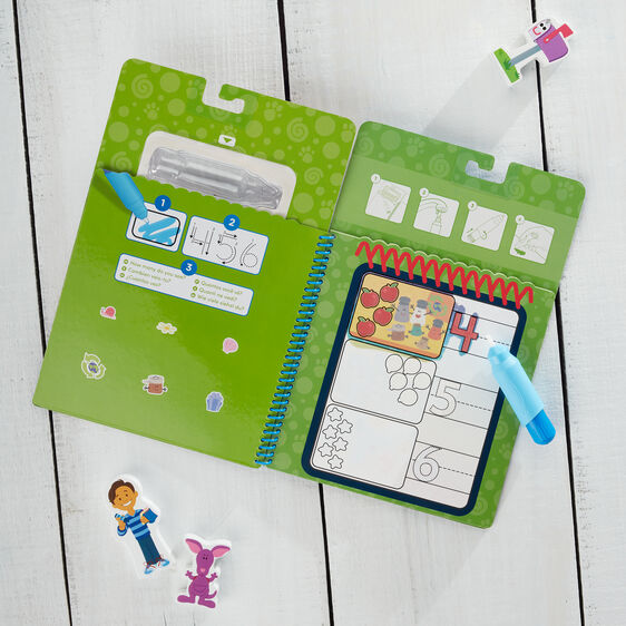 This exciting and reusable activity book features friends and elements from Blue’s Clues & You! on four number and counting-themed reusable Water Wow! Boards. Pages in the spiral-bound book are white when dry, and reveal colors, pictures, and numbers when wet. Let the pages dry to erase, then color with water again and again! Search-and-find activities are included with each scene. The chunky-sized water pen is easy to fill, easy for small hands to grasp, and stores in the activity pad - making it a terrific travel toy. Blue’s Clues & You! promotes kindergarten-readiness, inspiring confidence, empowerment, and kindness in preschoolers as they develop their problem-solving, social, and developmental skills through play.