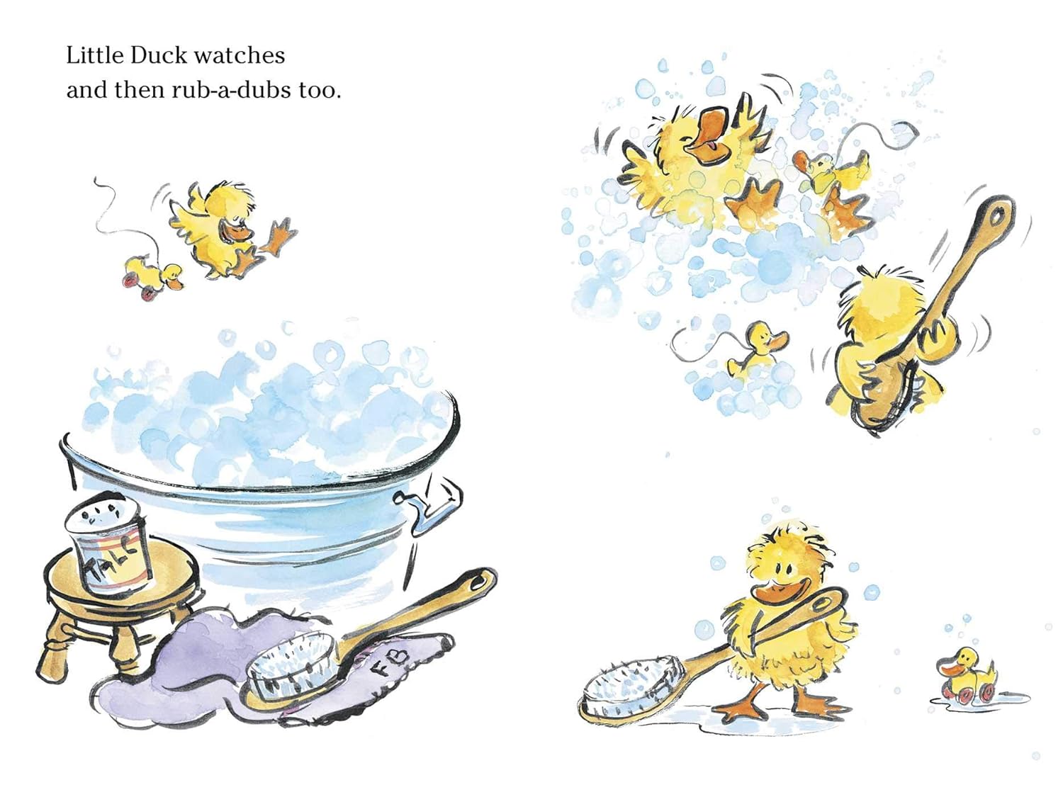 Everyone wants to look their best for the party. But Little Duck has never had a birthday before—so how better to learn how to prepare than to do what all the other animals do! The sheep trim their wool—so Little Duck trims her feathers. The pigs need a mud bath—so Little Duck quish and quashes, too. All over the barnyard Little Duck snips, slurps, squishes, and shimmy shakes herself ready until...WHOOPS! It’s party picture time—and Little Duck is a big mess. No matter—it’s not something Farmer Brown’s frosted maple cake can’t fix!